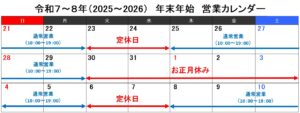令和7年末~令和8年始の平野屋の営業日のご案内をさせていただきます。